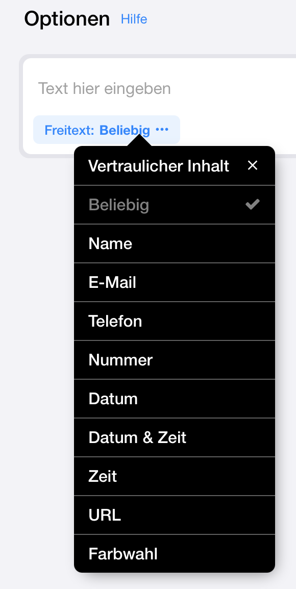 We’ve upgraded the free text function! You can now choose from various field types, and participant input will be validated accordingly.