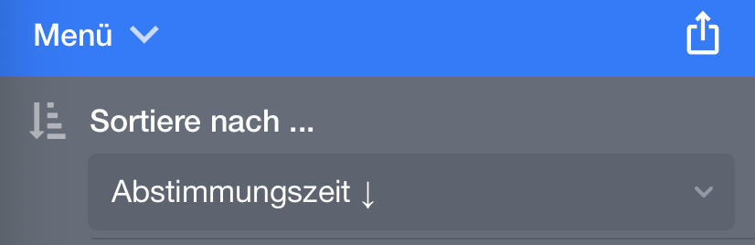 - You can now individually determine the sorting of votes in the poll directly through the "Menu." This setting applies to you and the specific survey. (You can still choose the overall sorting in your fragab settings as before.)
